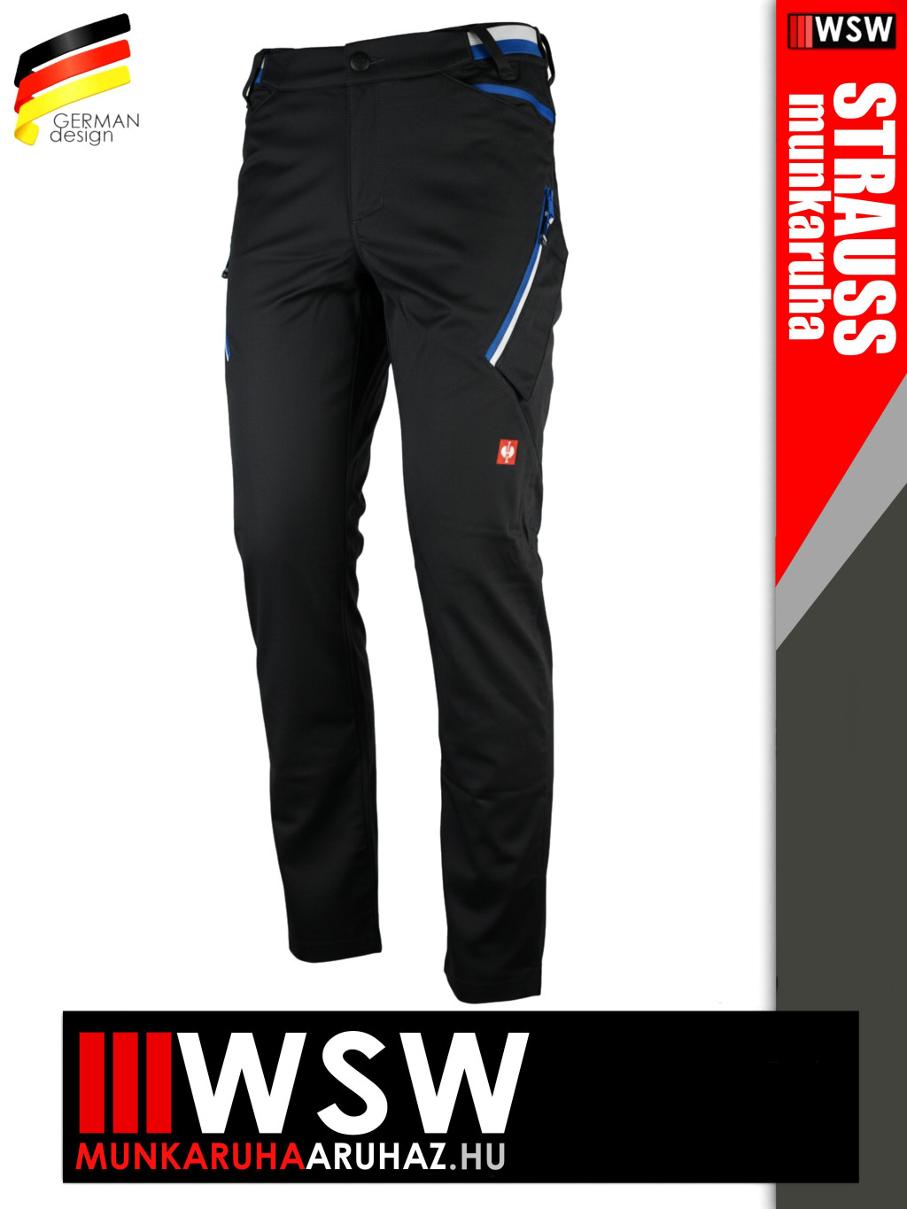 2 ferde zseb cipzárral, jobb oldalon vonalzó- és készsebbel, bal oldalon okostelefon-zsebbel és tépőzáras fedéllel