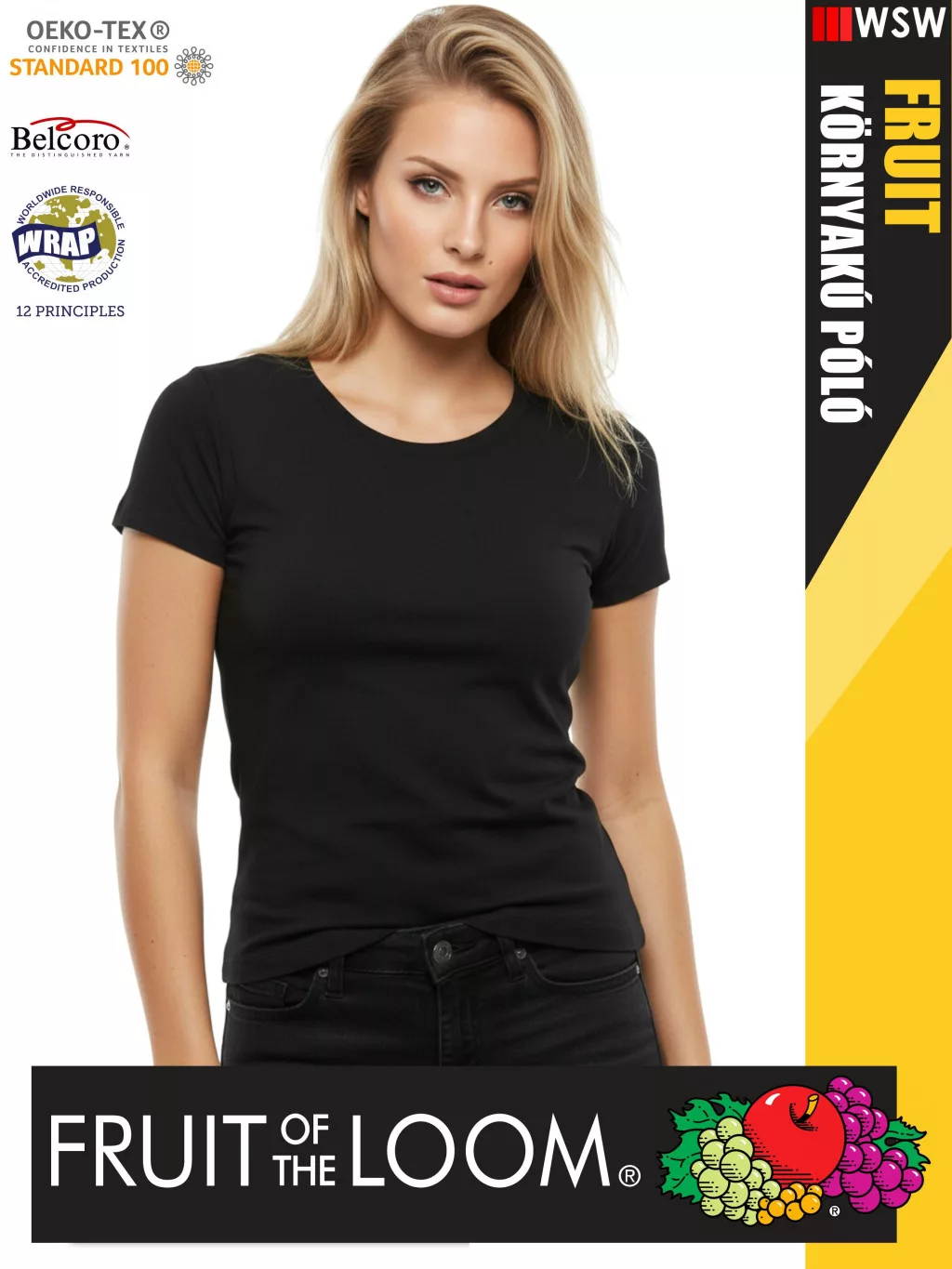 Fruit of the Loom VALUEWEIGHT BLACK pamut női póló - 165g/m2