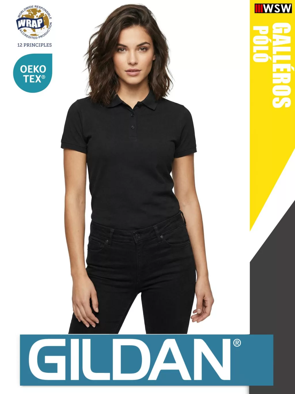 Gildan SOFTSTYLE BLACK rövidujjú női galléros 100% pamut póló