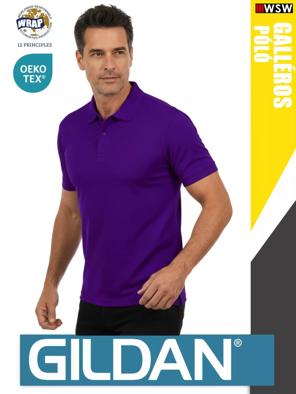 Gildan SOFTSTYLE PURPLE rövidujjú férfi galléros 100% pamut póló