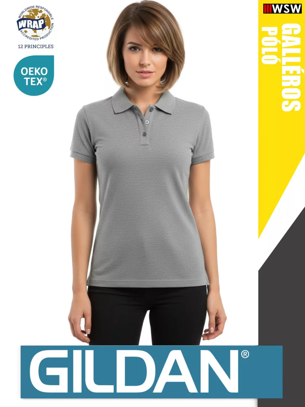 Gildan SOFTSTYLE RSSPORTGREY rövidujjú női galléros 100% pamut póló