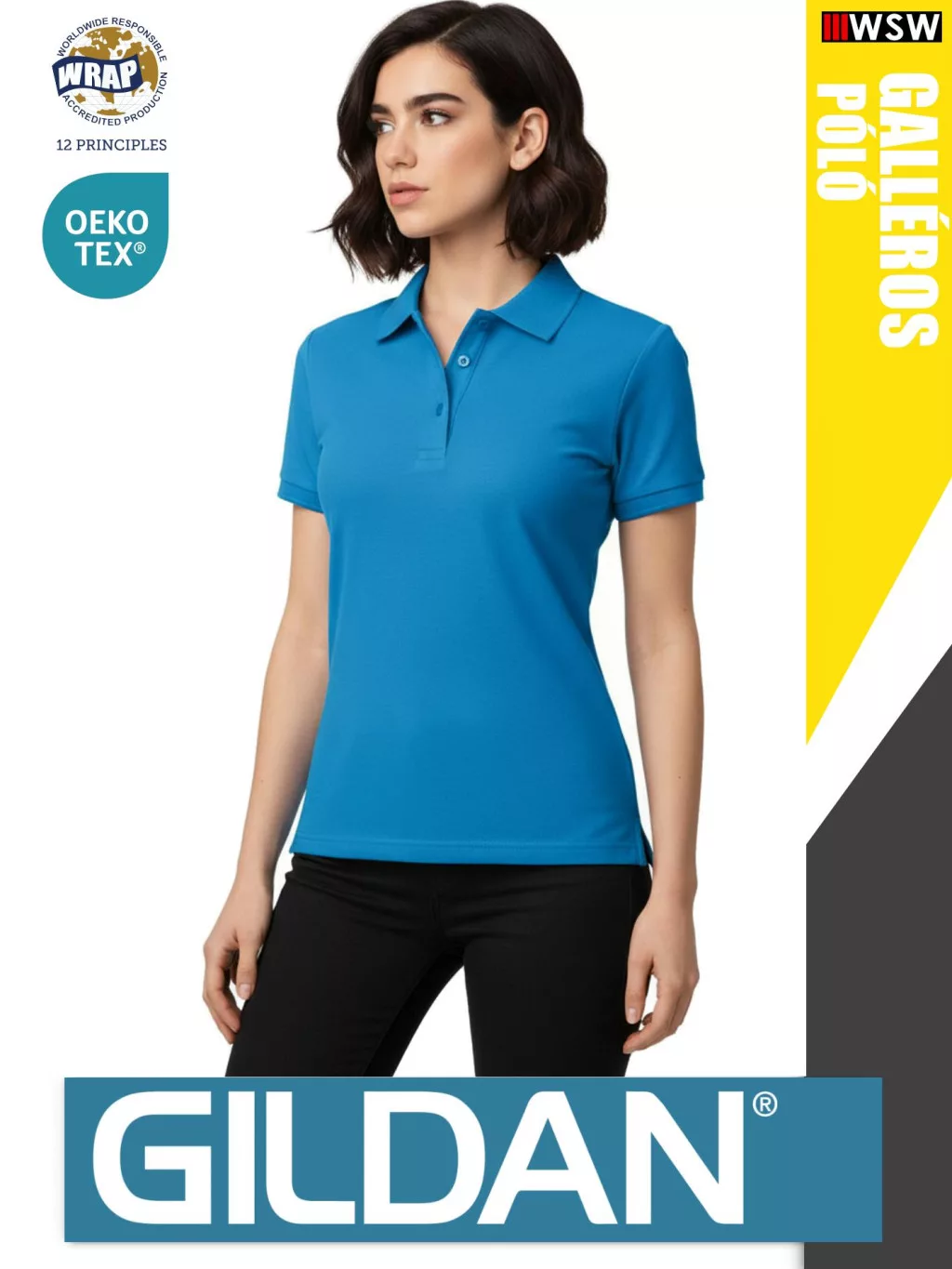 Gildan SOFTSTYLE SAPPHIRE rövidujjú női galléros 100% pamut póló