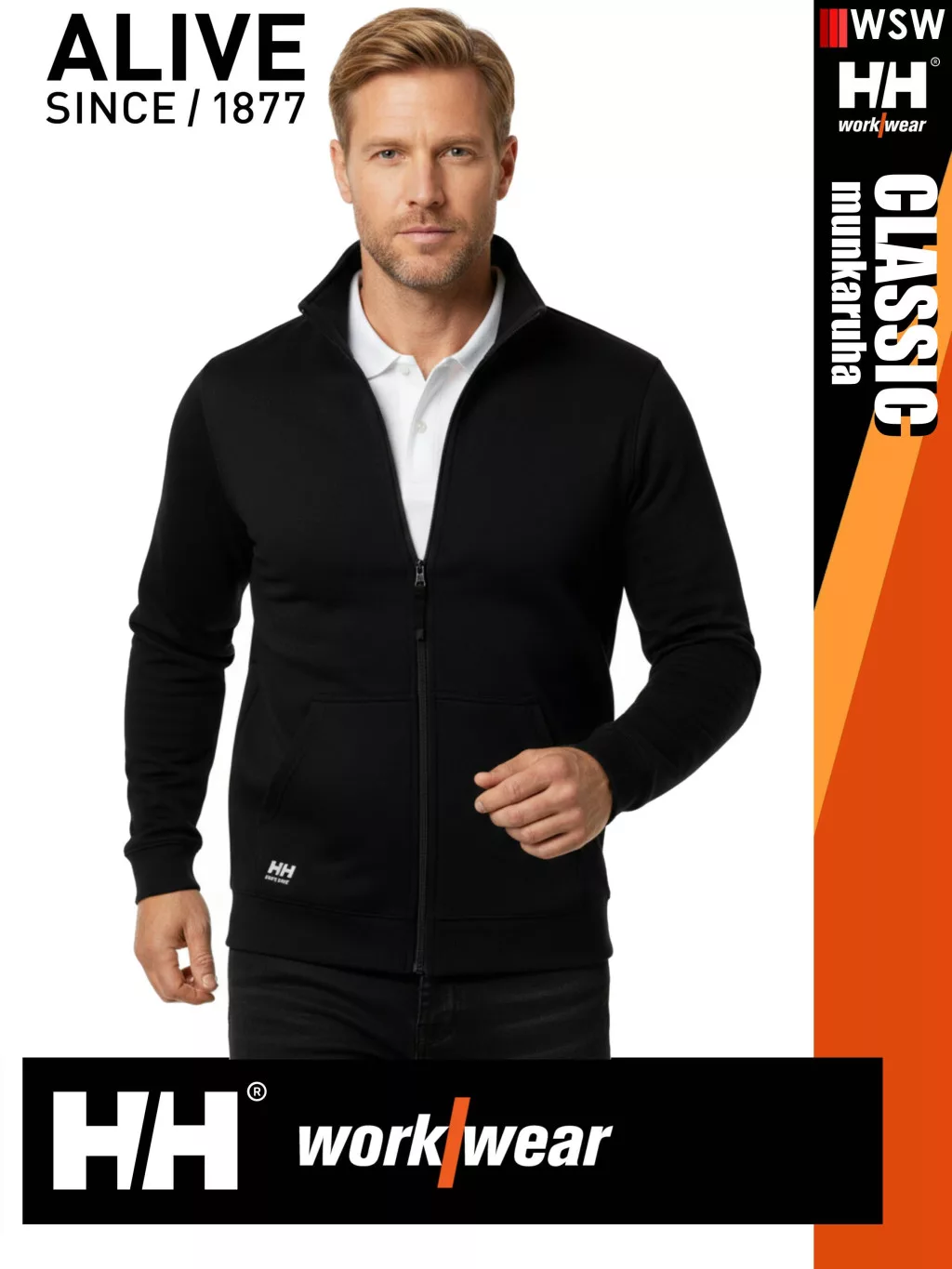 Helly Hansen CLASSIC BLACK prémium férfi cipzáras pulóver - munkaruha