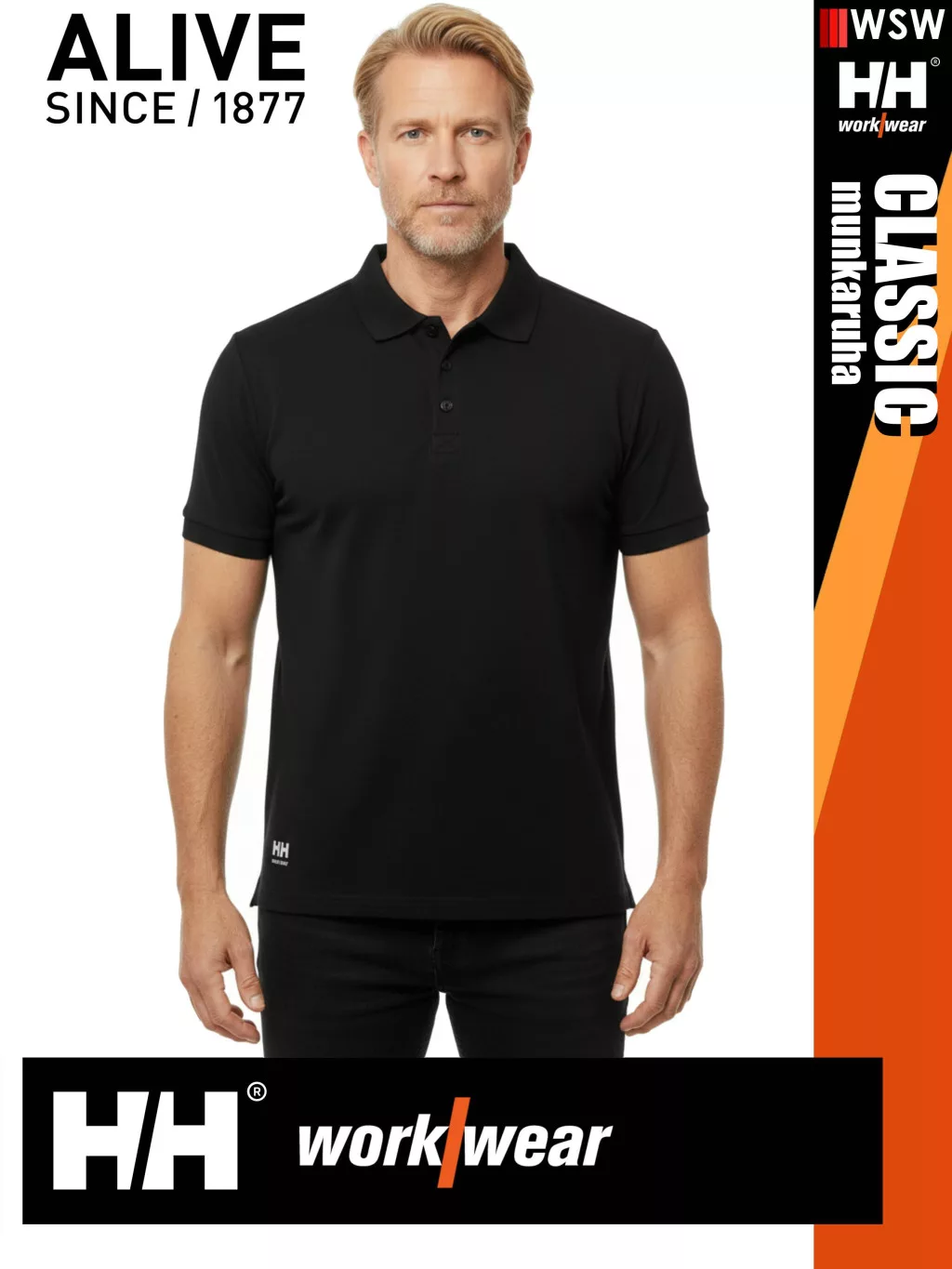 Helly Hansen CLASSIC BLACK prémium férfi galléros póló - munkaruha
