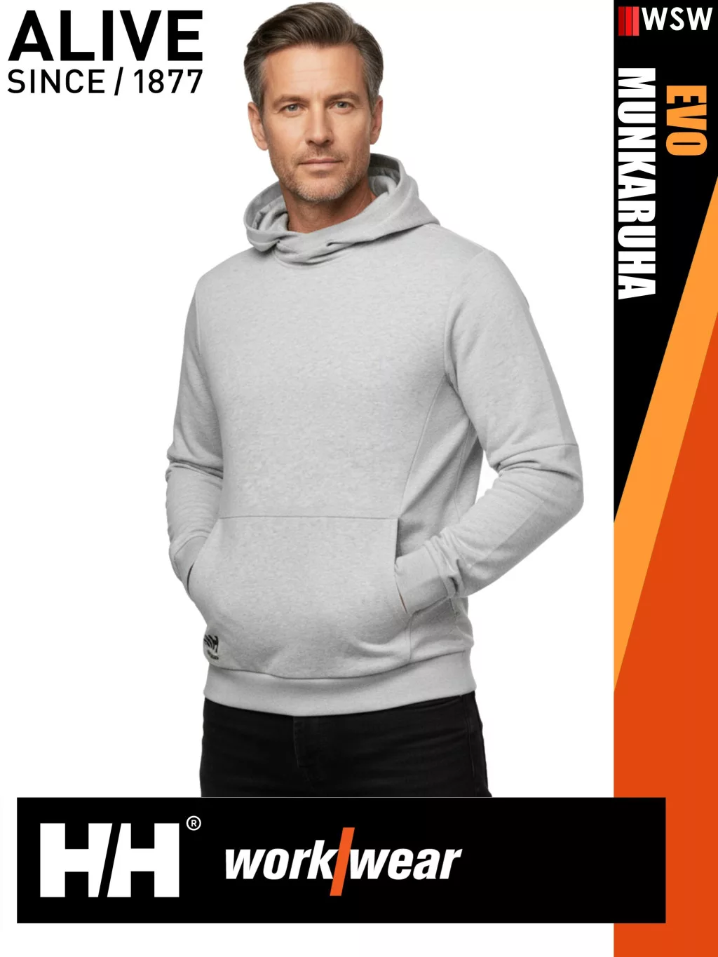 Helly Hansen EVO GREYMELANGE prémium kapucnis férfi pulóver - munkaruha