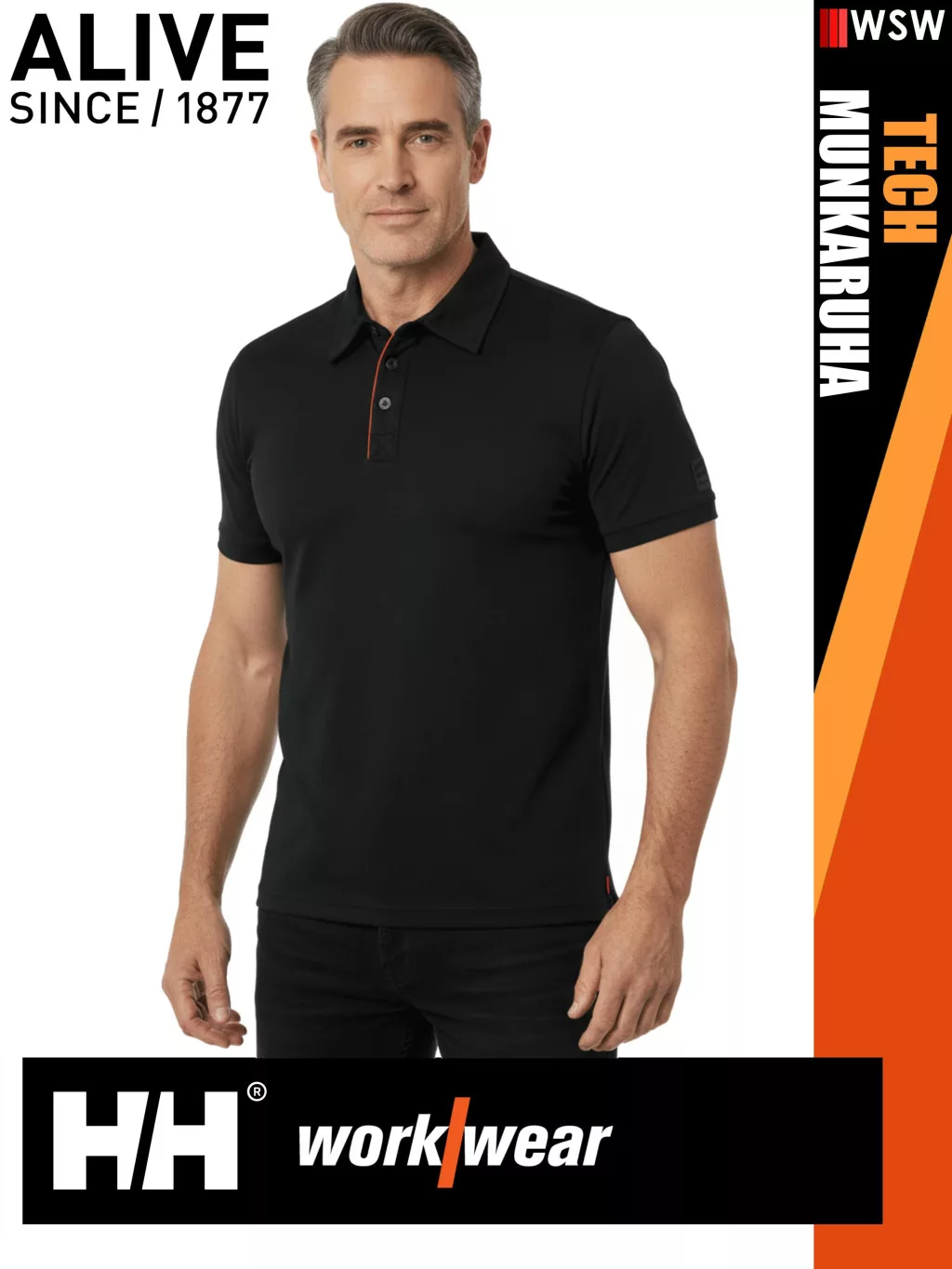 Helly Hansen TECH BLACK technikai UV álló galléros férfi póló - munkaruha