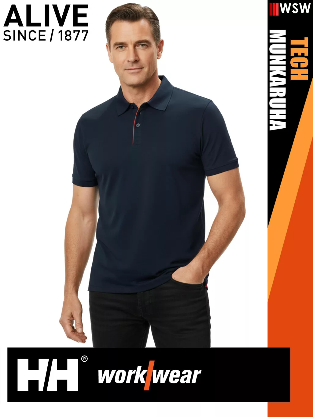 Helly Hansen TECH NAVY technikai UV álló galléros férfi póló - munkaruha