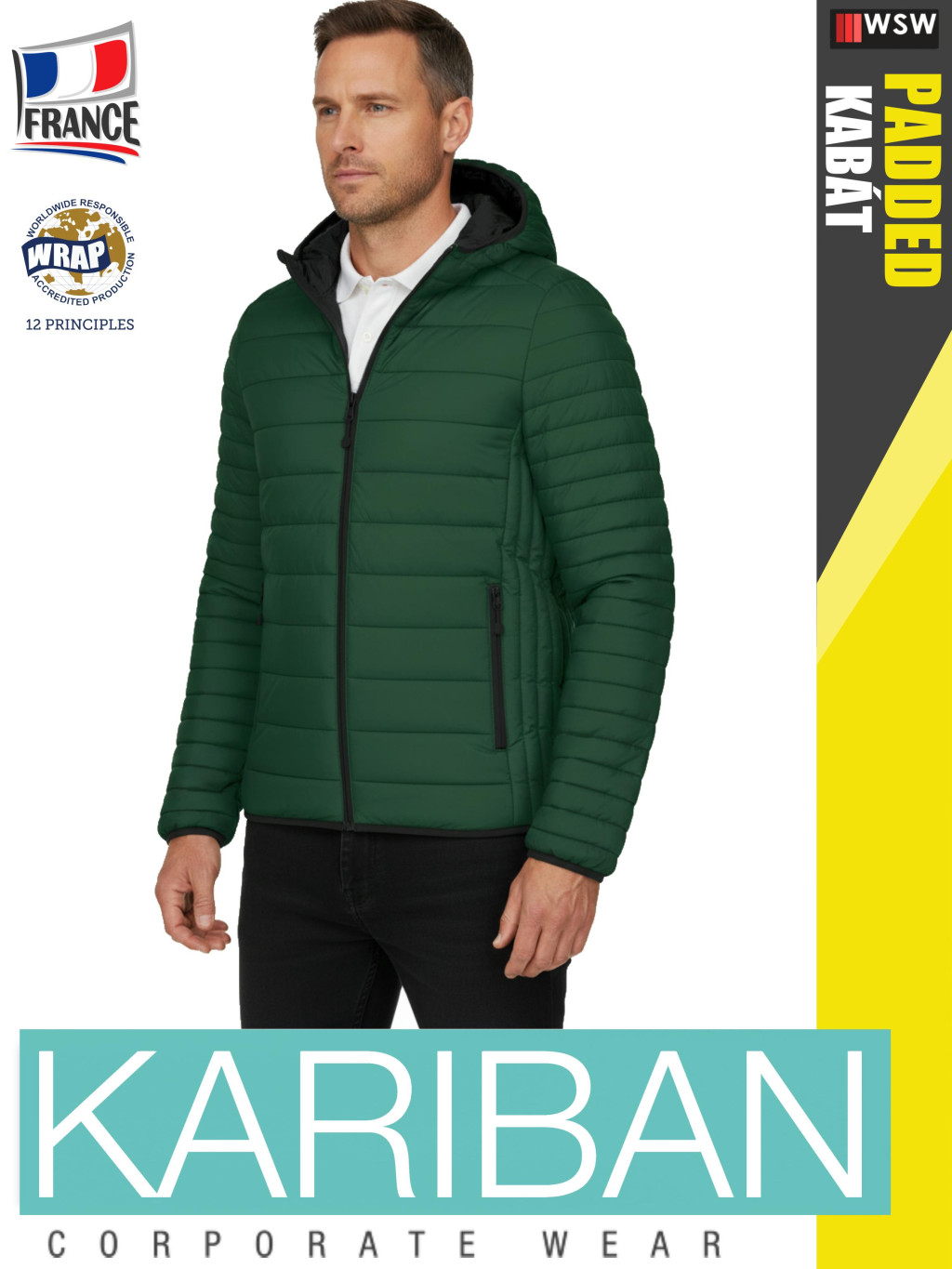 Kariban LIGHTWEIGHT PADDED FOREST férfi bélelt kapucnis kabát - munkaruha