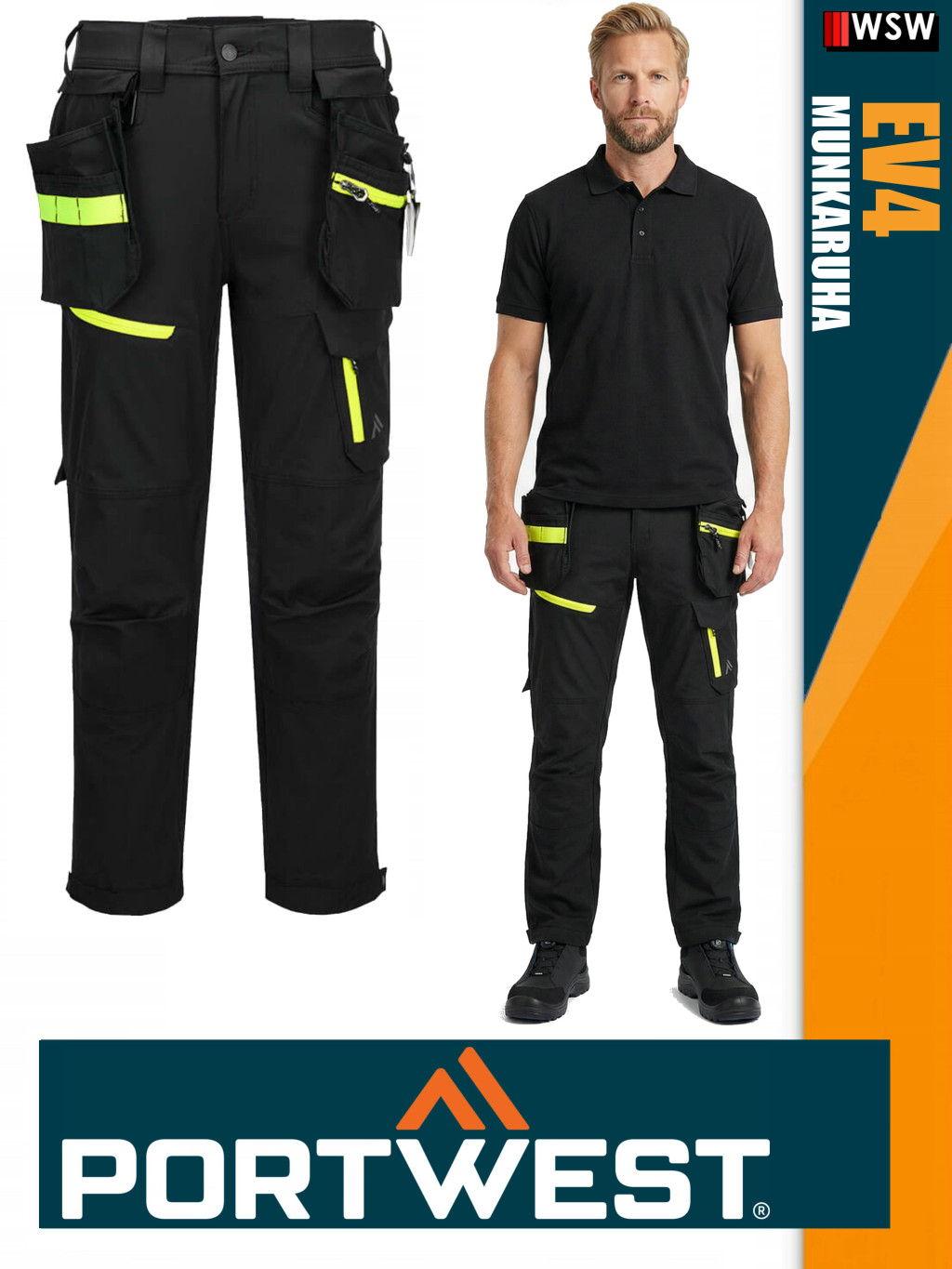 Az EV4 könnyű levehető lengőzsebes nadrág továbbfejlesztett ergonómikus kialakítású, lézervágott szellőzéssel rendelkezik az optimális légáramlás érdekében munka közben. Emelt derékkal és oldalsó gumirozással, kiváló védelmet nyújt minden munkapozícióban. A nadrág állítható, felülről tölthető térdpárnazsebeket, tágas elülső zsebeket és sokoldalú, cipzáras combzsebeket tartalmaz a telefonok, tollak és szerszámok biztonságos tárolására. Háromszoros varrás a maximális tartósság érdekében.
