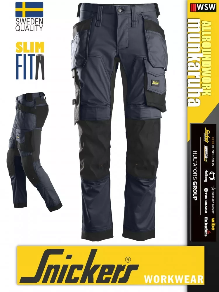 Snickers ALLROUNDWORK NAVY strech slim fit prémium lengőzsebs deréknadrág - munkaruha
