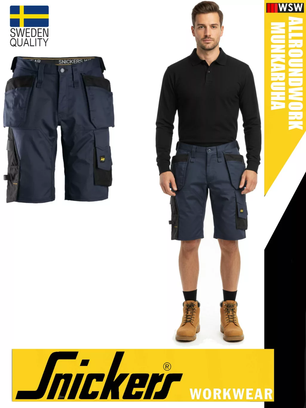 Snickers ALLROUNDWORK NAVY technikai kopásbiztos lengőzsebes strech rövidnadrág - munkaruha