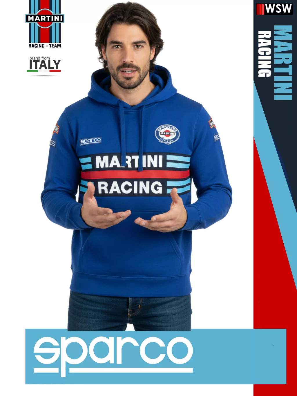 A Sparco Martini Racing kapucnis pulóver a Martini Racing ikonikus stílusát tükrözi.