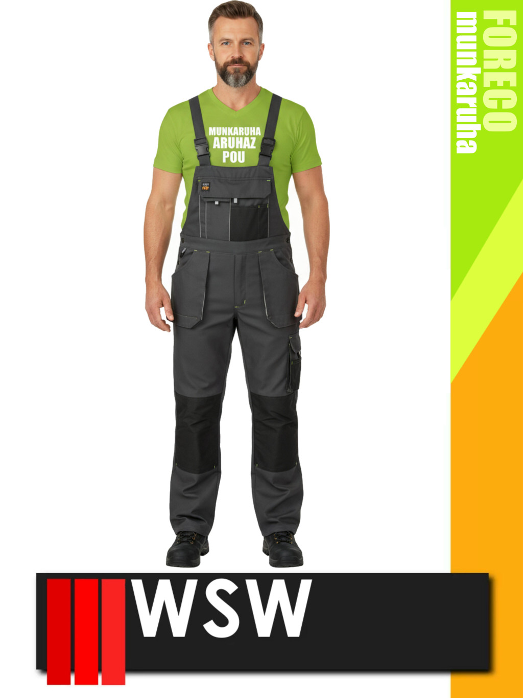 WSW FORECO GREYBLACK technikai kevertszálas kantáros munkanadrág - munkaruha
