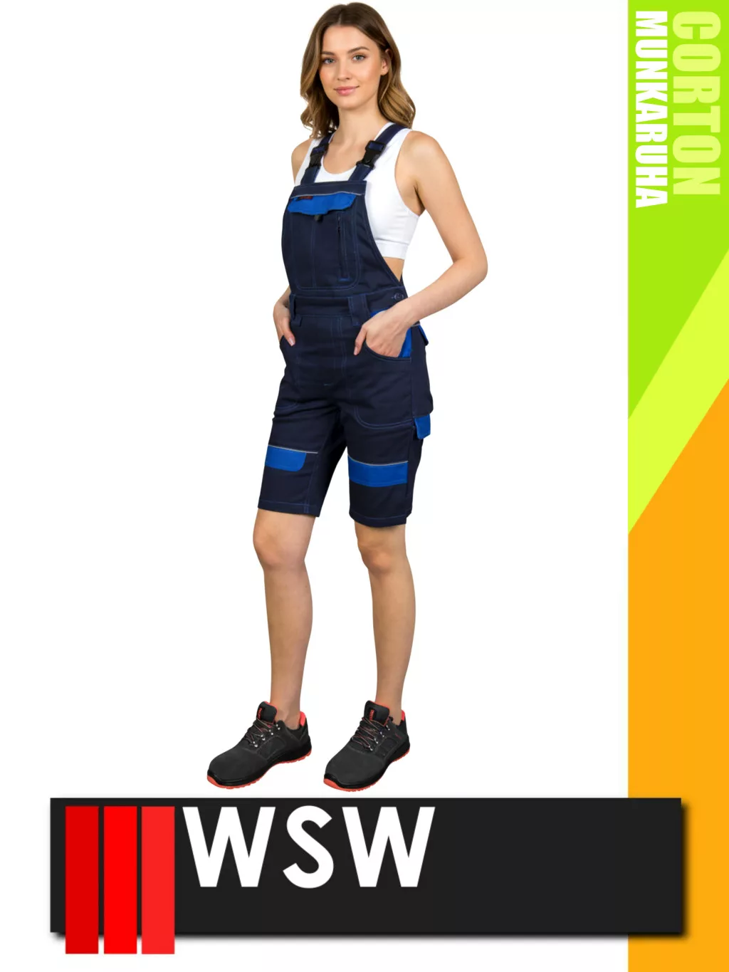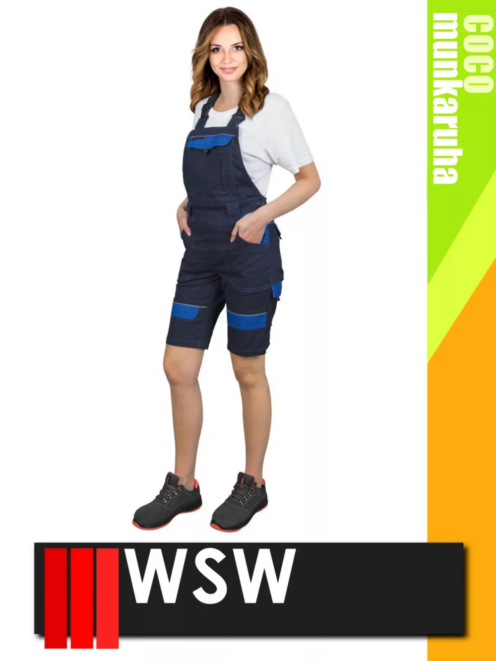 WSW COCO NAVY technikai 100% pamut női derekas rövid munkanadrág - munkaruha