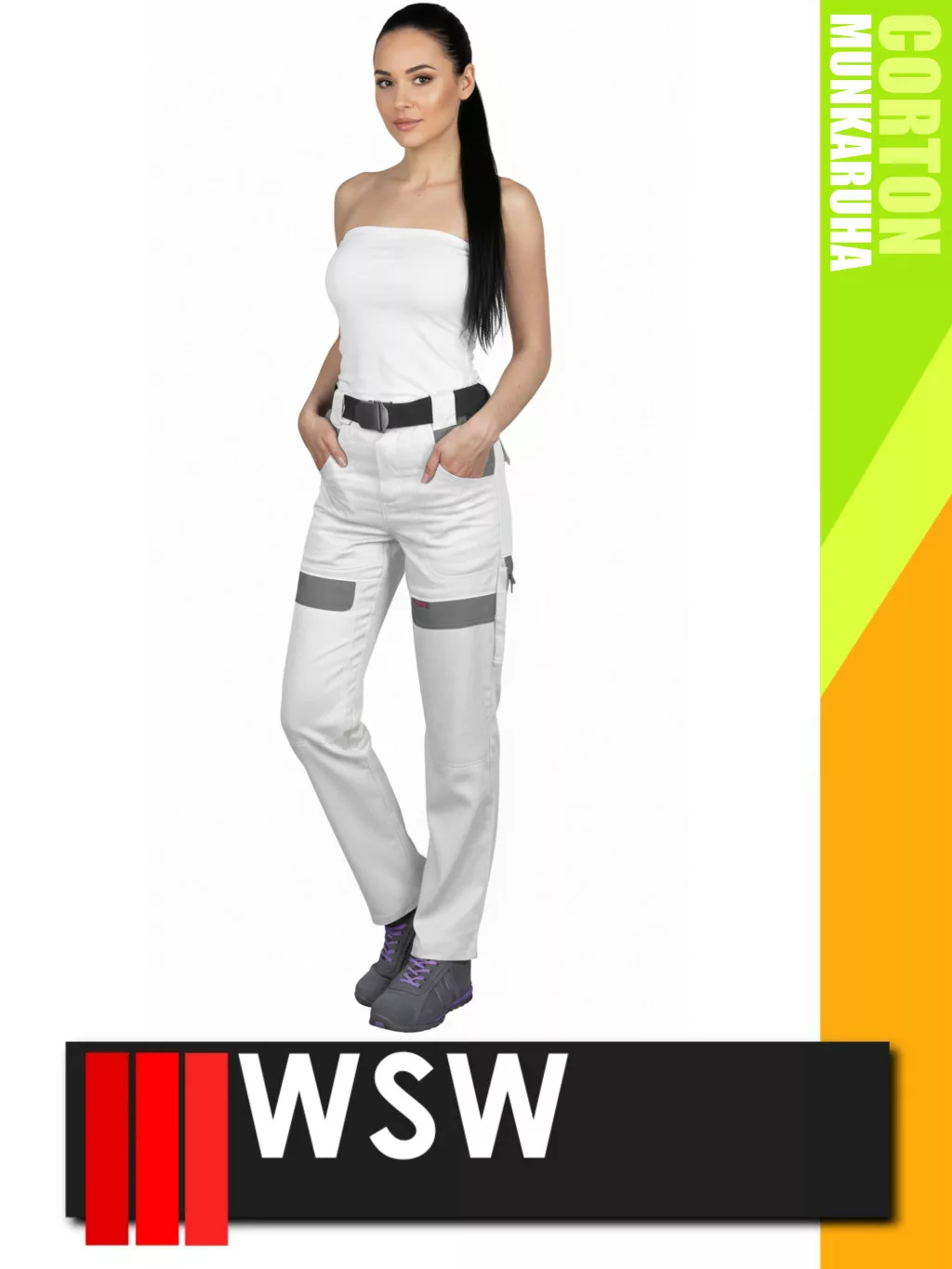 WSW COCO WHITE technikai 100% pamut női derekas munkanadrág - munkaruha