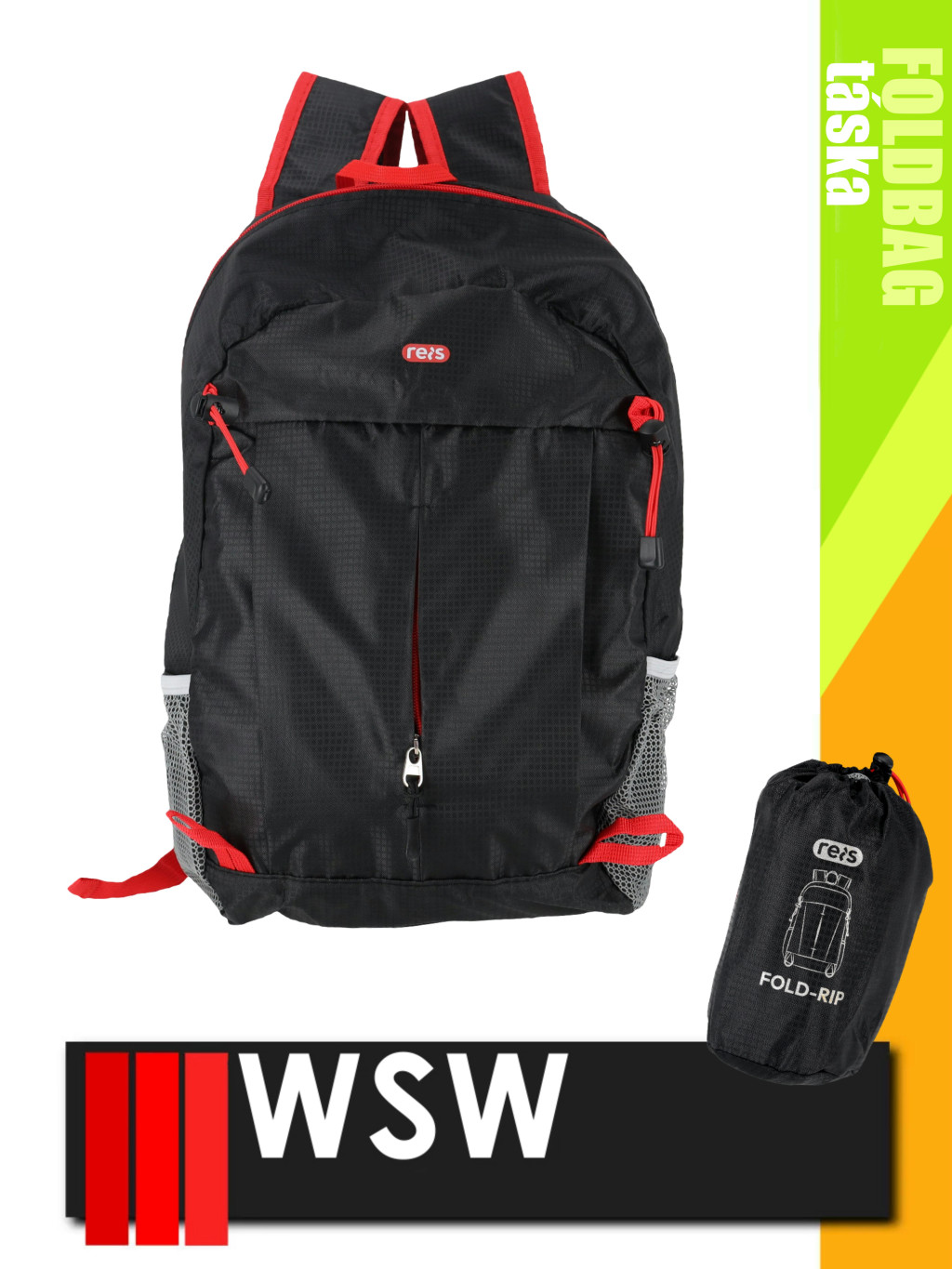 Anyag: 100% 210D poliészter, belső PU bevonattalSúly: 120 g/m²Méretek: 44x27x15 cmTérfogat: 12 lkét cipzáras zsebállítható hátizsák pántokhurkok további kiegészítők rögzítéséhezcsomagolva egy 16,5x10x9 cm méretű táskában
