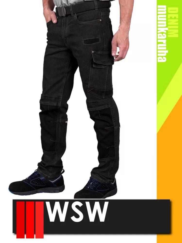 WSW MED DENIM BLACK technikai kevertszálas derekas farmer munkanadrág - munkaruha