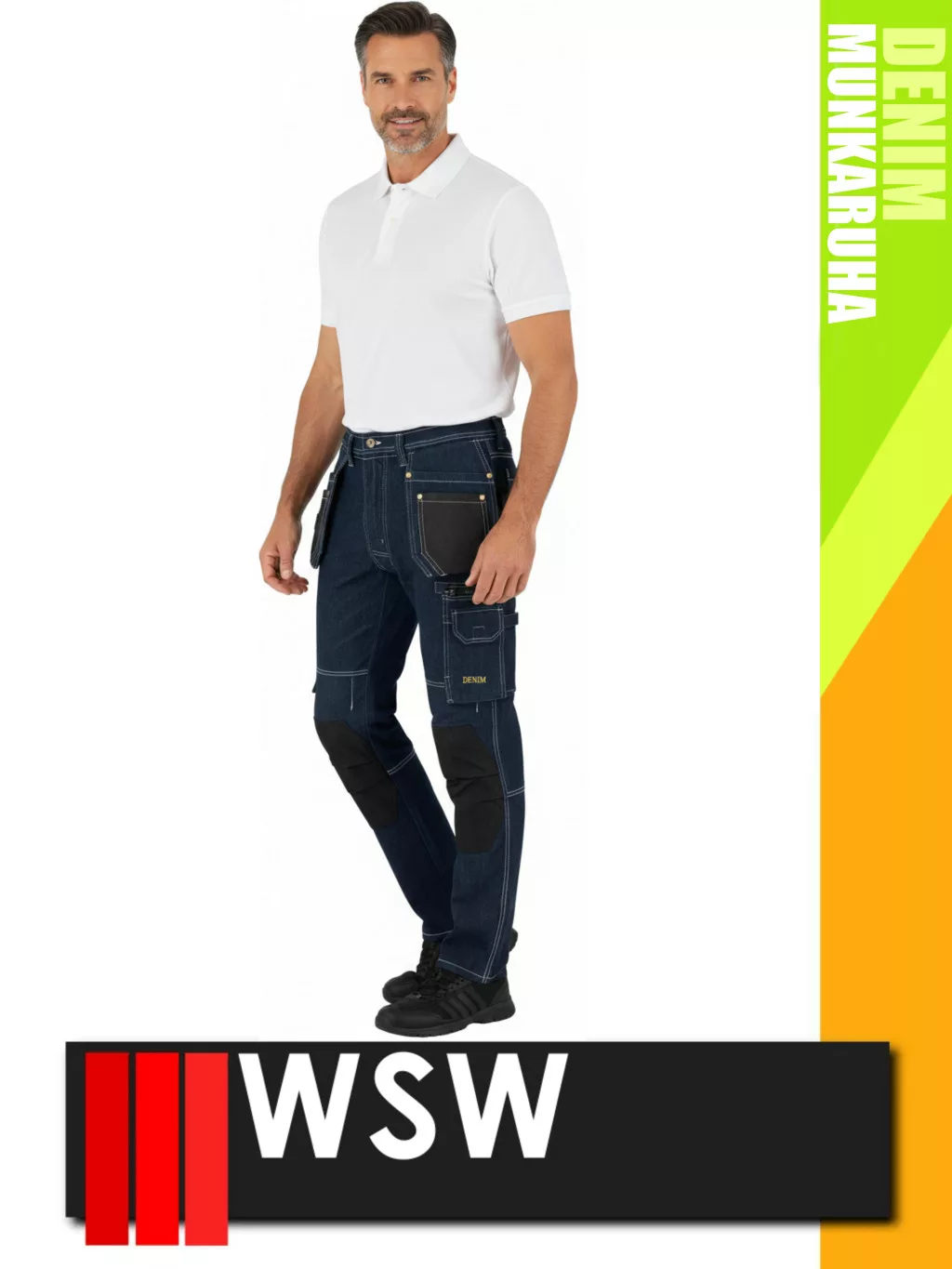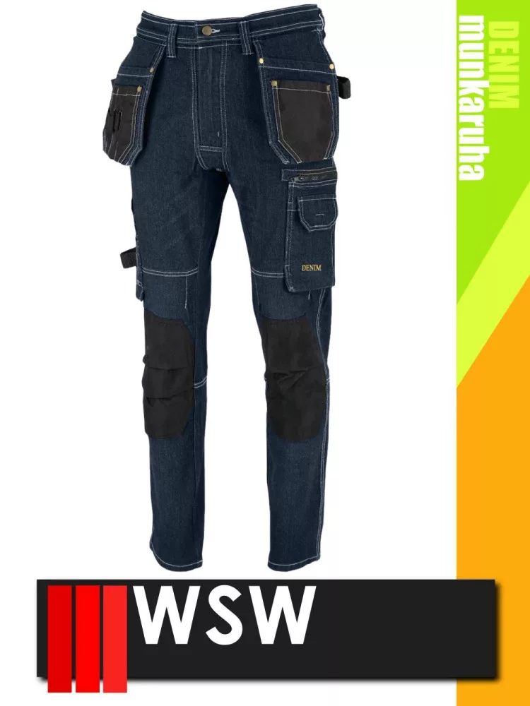 WSW MED DENIM NAVY technikai kevertszálas derekas farmer munkanadrág - munkaruha