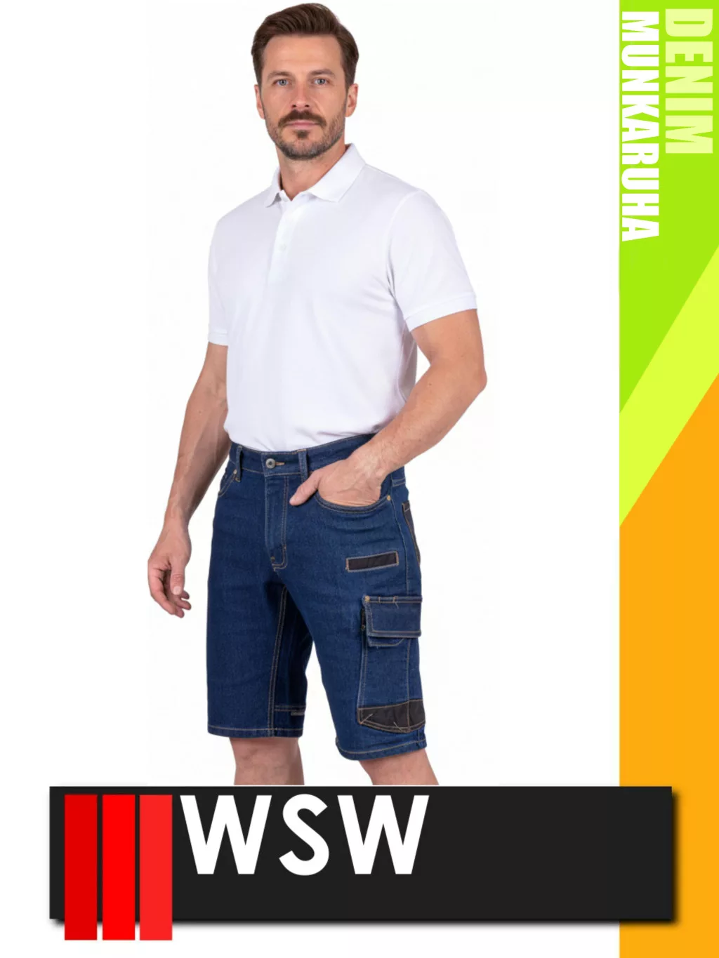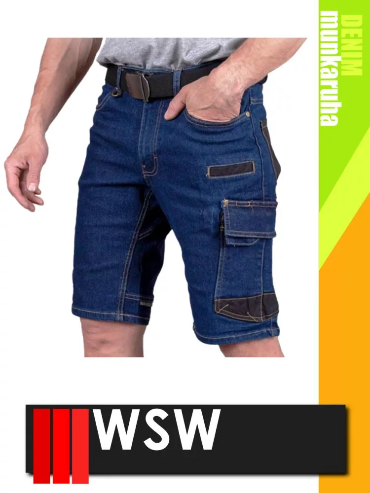 WSW MED DENIM NAVY technikai kevertszálas rövid farmer munkanadrág - munkaruha