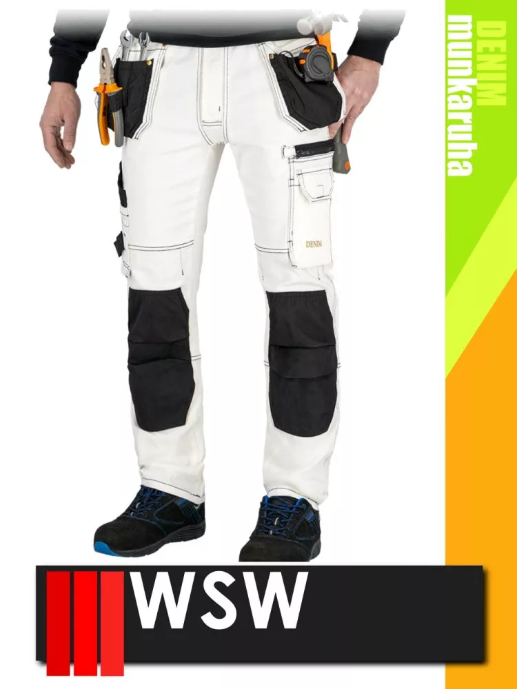 WSW MED DENIM WHITE technikai kevertszálas derekas farmer munkanadrág - munkaruha