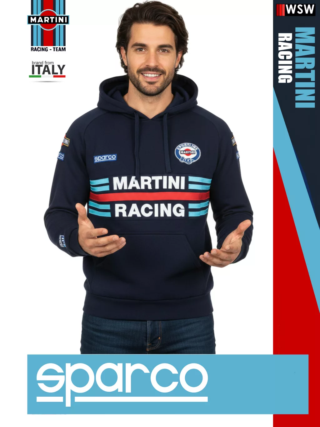 A Sparco Martini Racing kapucnis pulóver a Martini Racing ikonikus stílusát tükrözi.