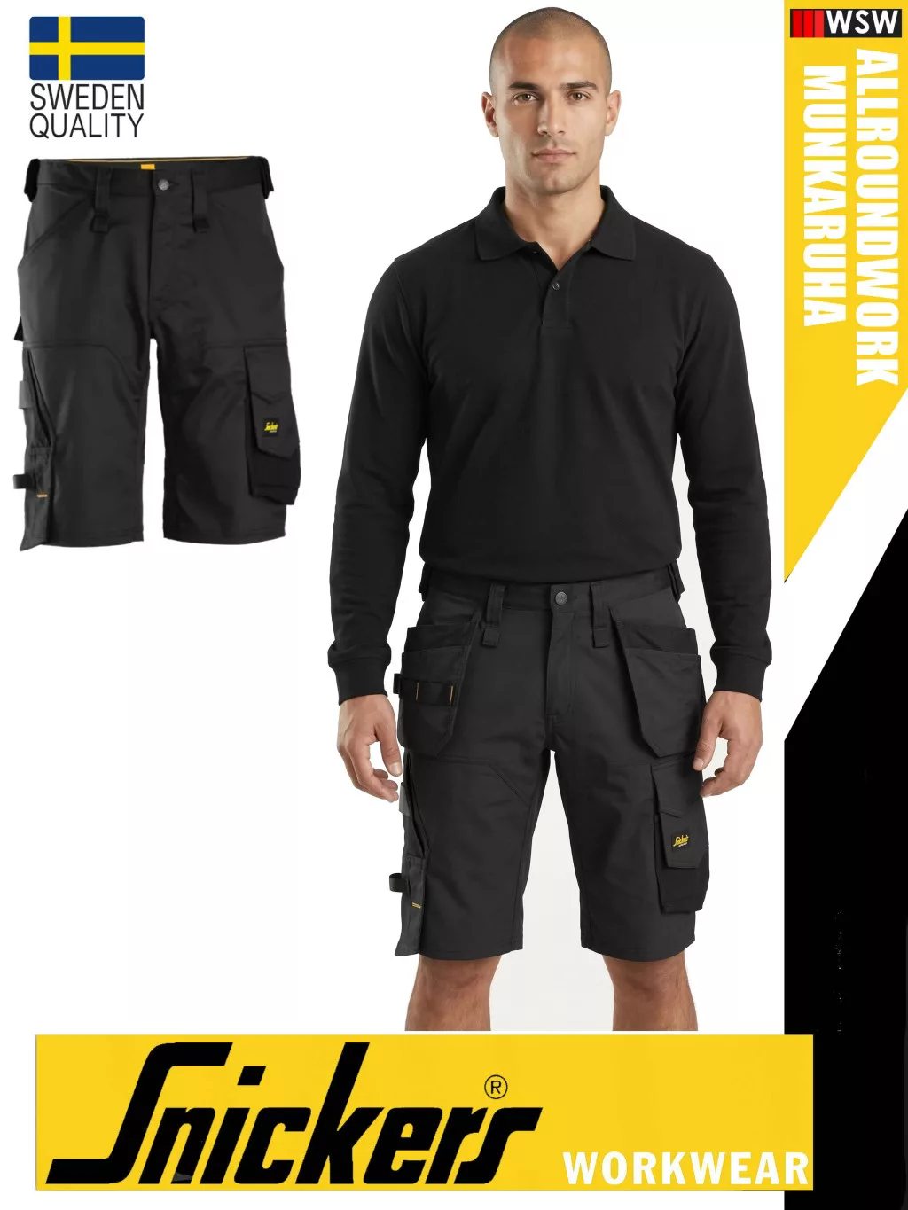 Snickers ALLROUNDWORK BLACK technikai kopásbiztos strech rövidnadrág - munkaruha