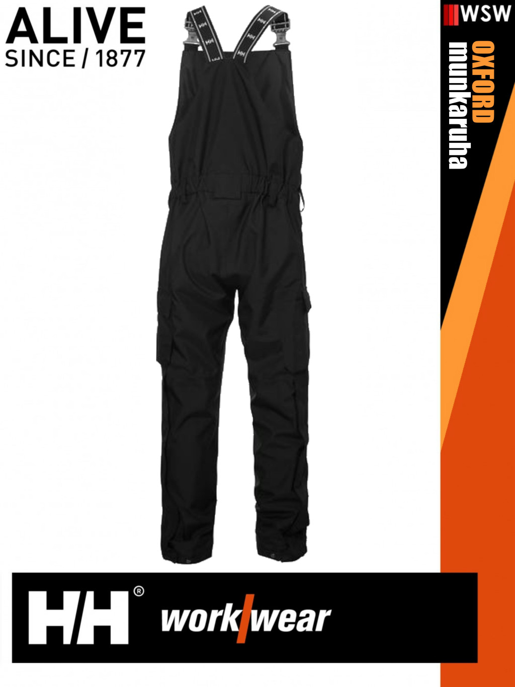 Helly Hansen OXFORD BLACK pamutgazdag szervíz shell kantáros nadrág - munkaruha