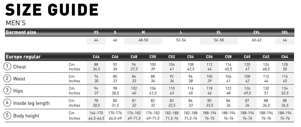 HU(34/36) UK(22/24) XS, HU(38/40) UK(26/28) S, HU(42/42) UK(30/32) M, HU(44/46) UK(33/34) L, HU(48/50) UK(36/38) XL, HU(52/54) UK(40/42) 2XL, HU(55/58) UK(44/46) 3XL