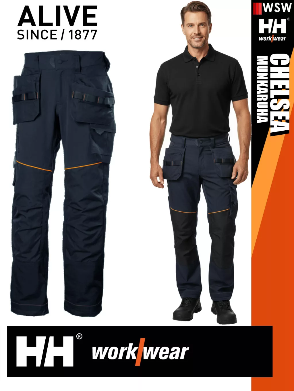 A munkaruha kopásálló technikai anyagból készűlt erősített varásokkal.
