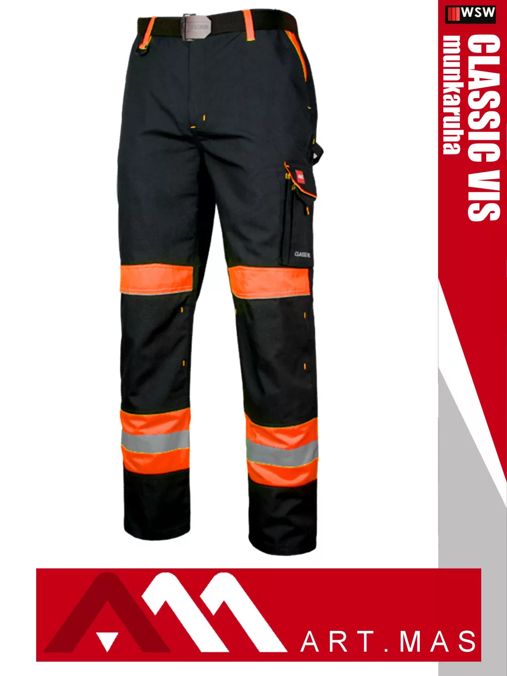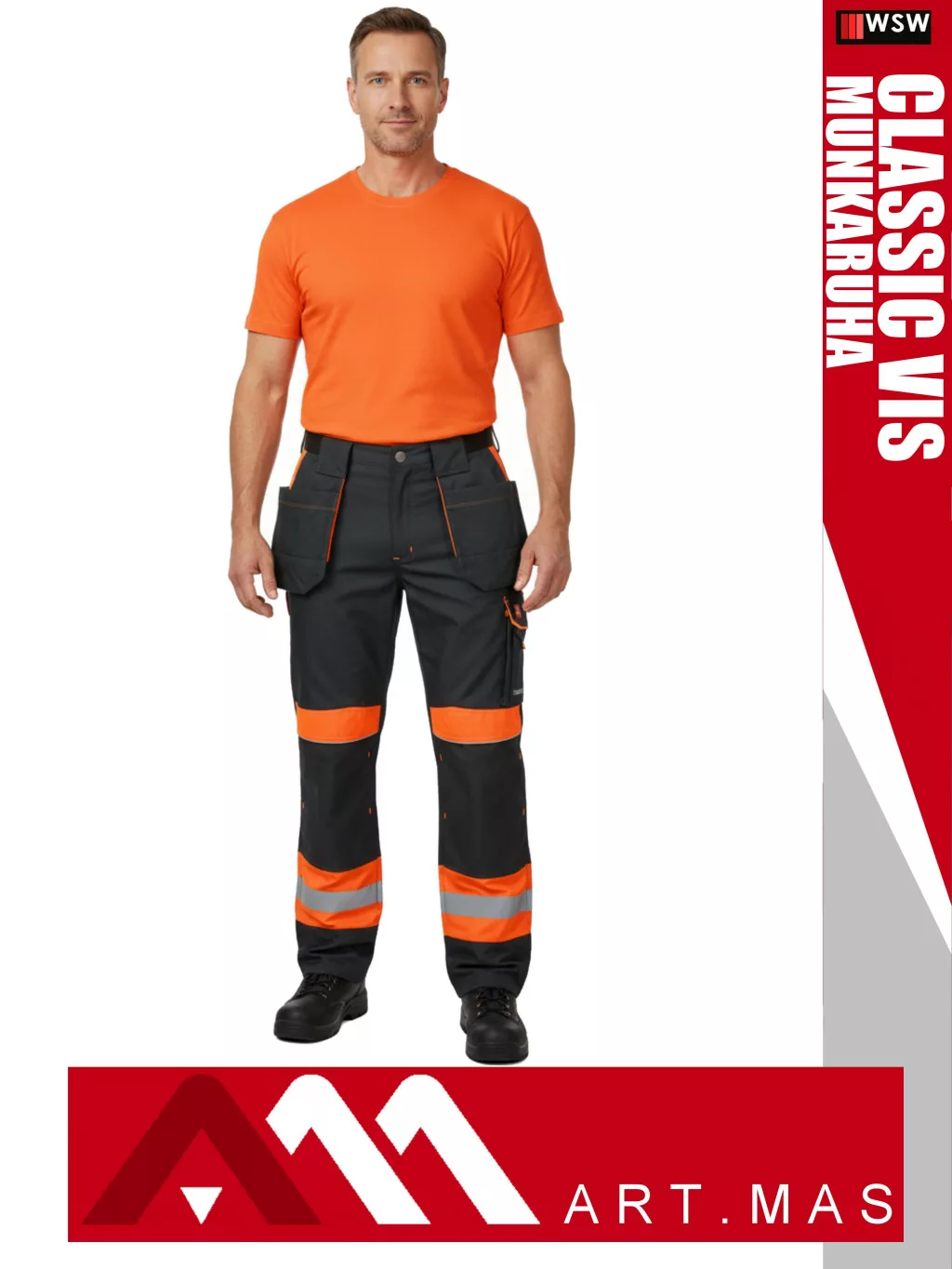 Artmas CLASSIC VIS ORANGE technikai kevertszálas kopásálló munkanadrág - munkaruha