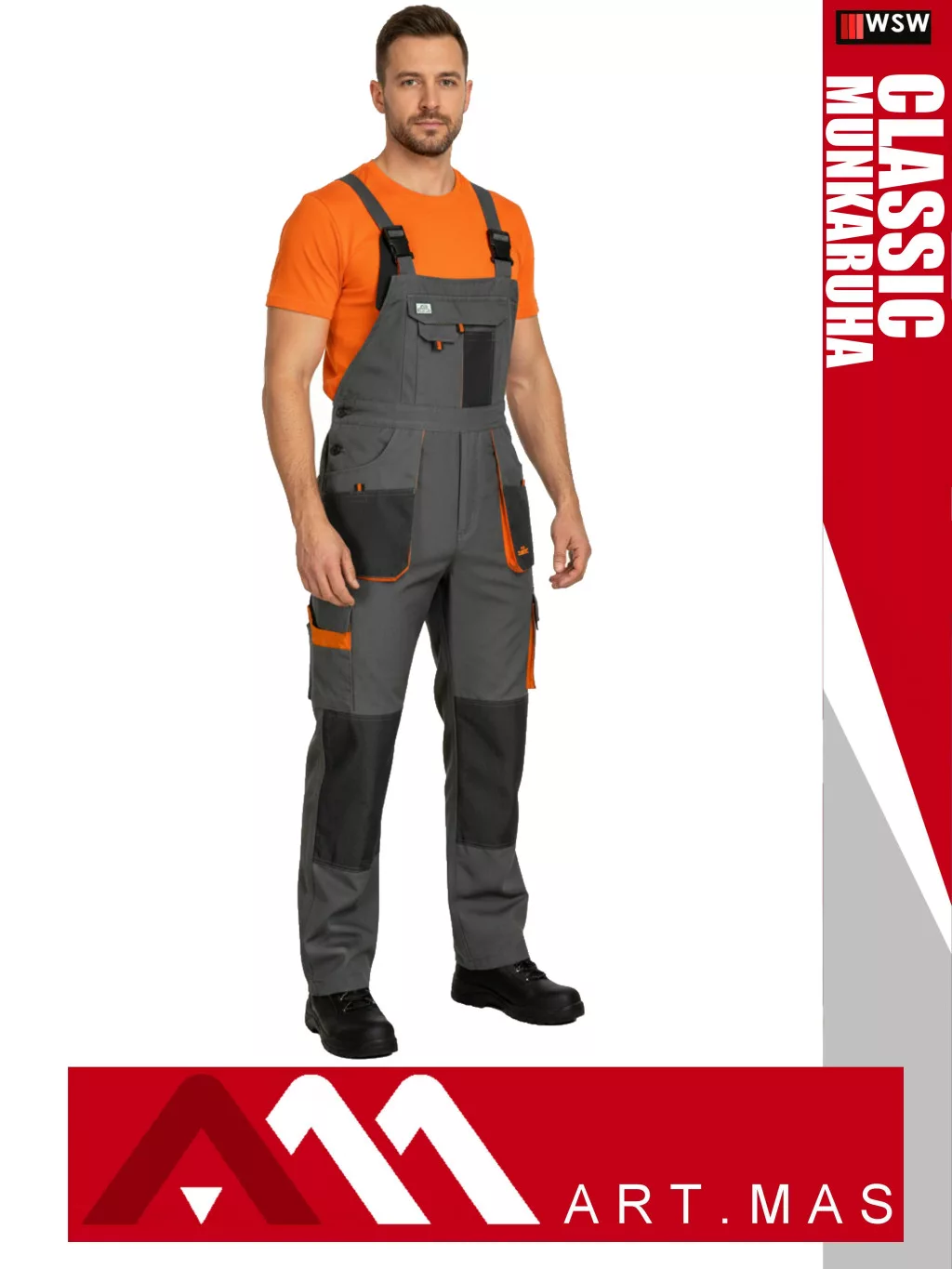 Artmas CLASSIC GREY technikai kevertszálas kopásálló kantáros munkanadrág - munkaruha