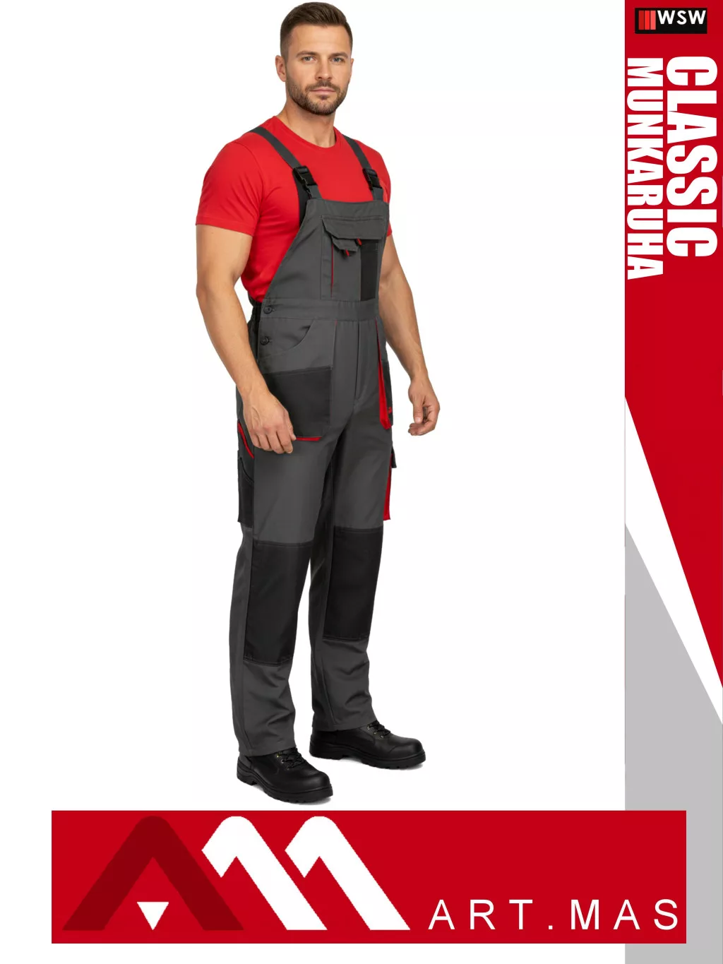Artmas CLASSIC GREYRED technikai kevertszálas kopásálló kantáros munkanadrág - munkaruha