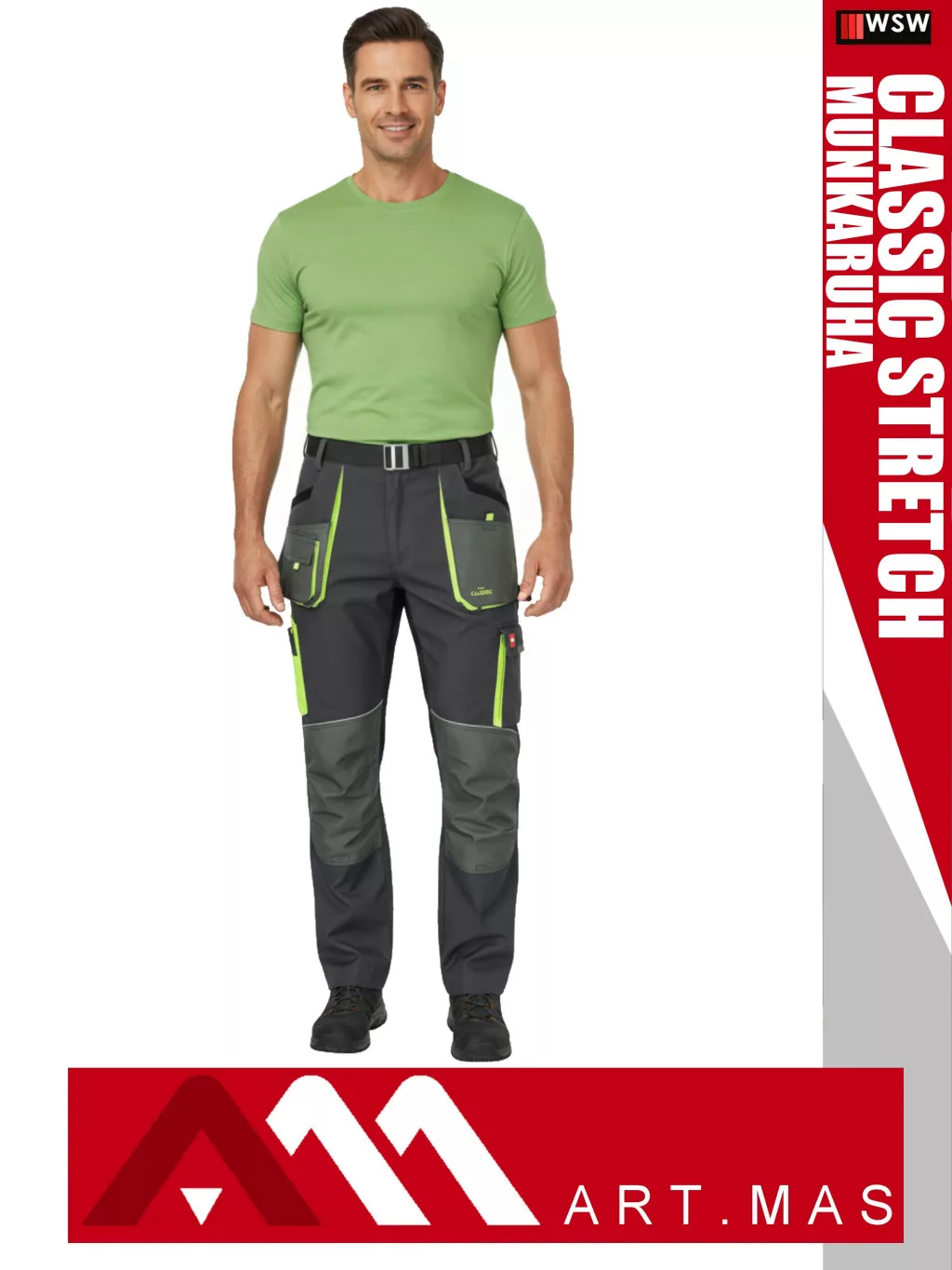 Artmas CLASSIC STRETCH GREY pamutgazdag rugalmas anyagú slimfit munkanadrág - munkaruha