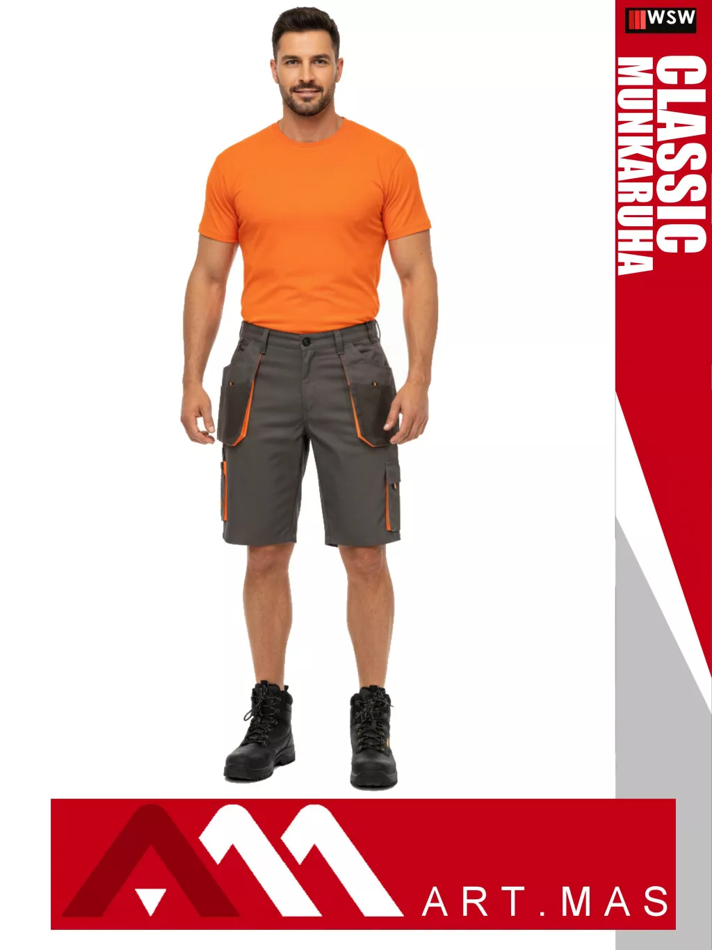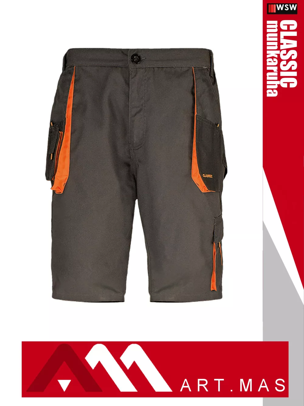 Artmas CLASSIC GREY technikai kevertszálas kopásálló rövid munkanadrág - munkaruha