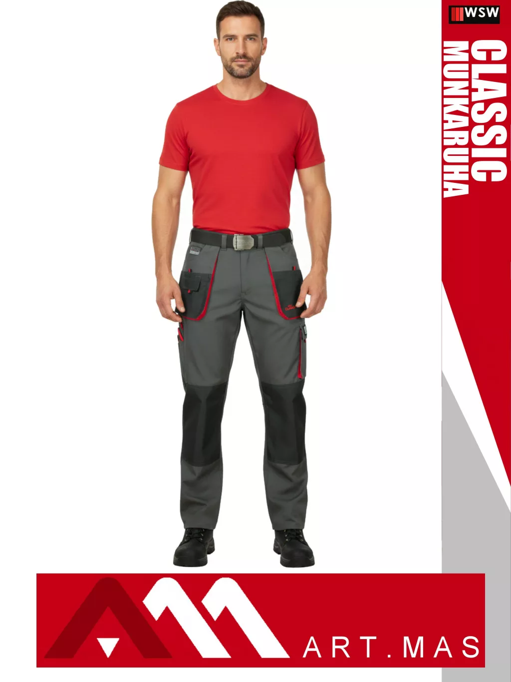 Artmas CLASSIC GREYRED technikai kevertszálas kopásálló munkanadrág - munkaruha