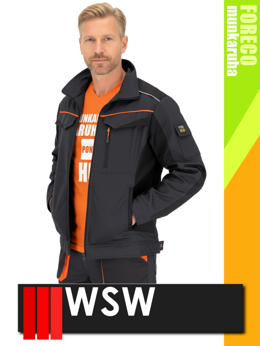 WSW FORECO GREYORANGE technikai kevertszálas strech kabát - munkaruha