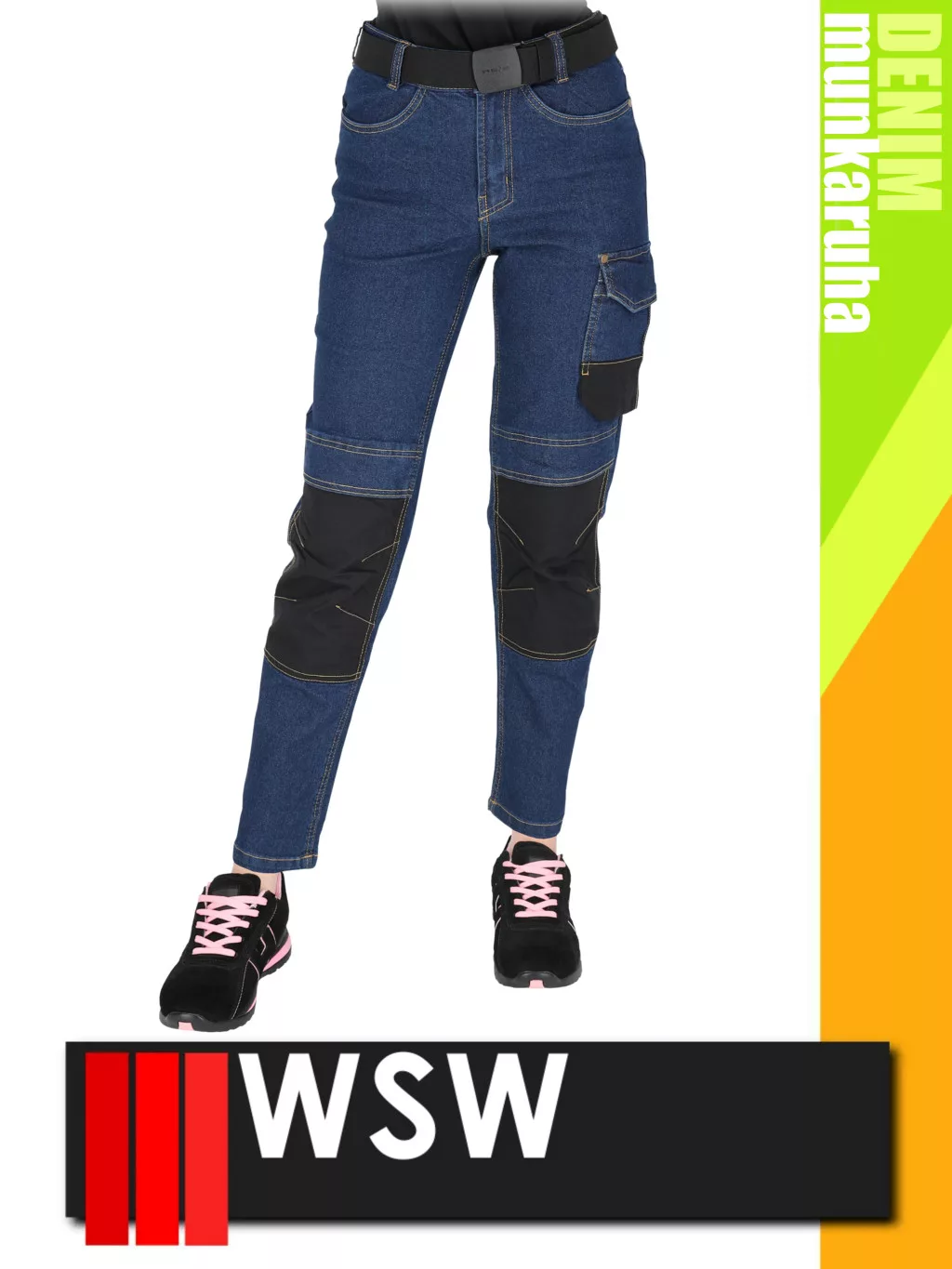 WSW MED DENIM NAVY technikai kevertszálas derekas farmer női munkanadrág - munkaruha