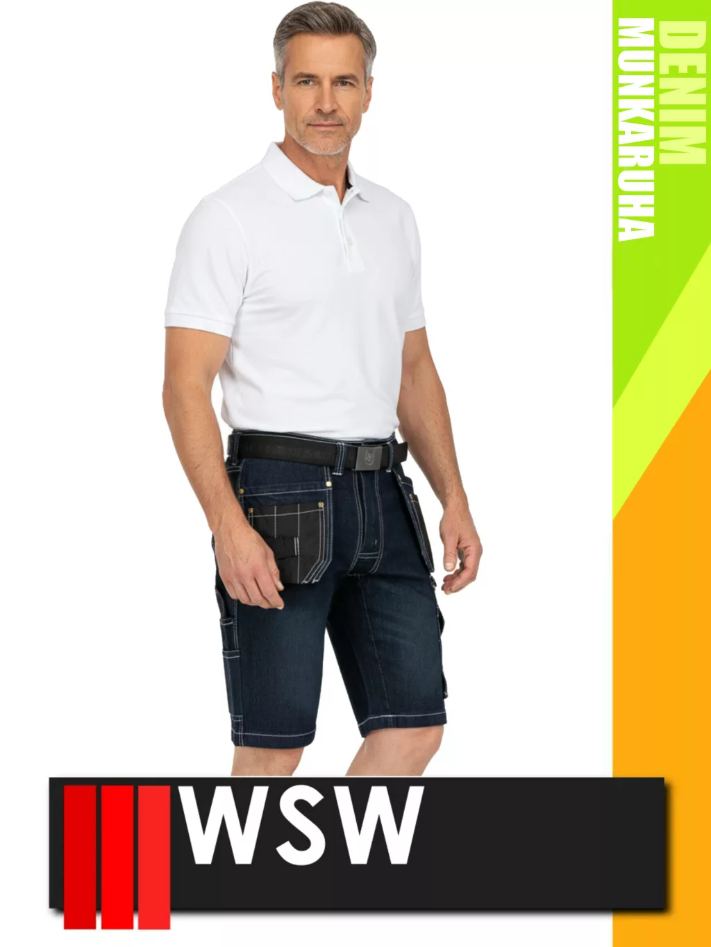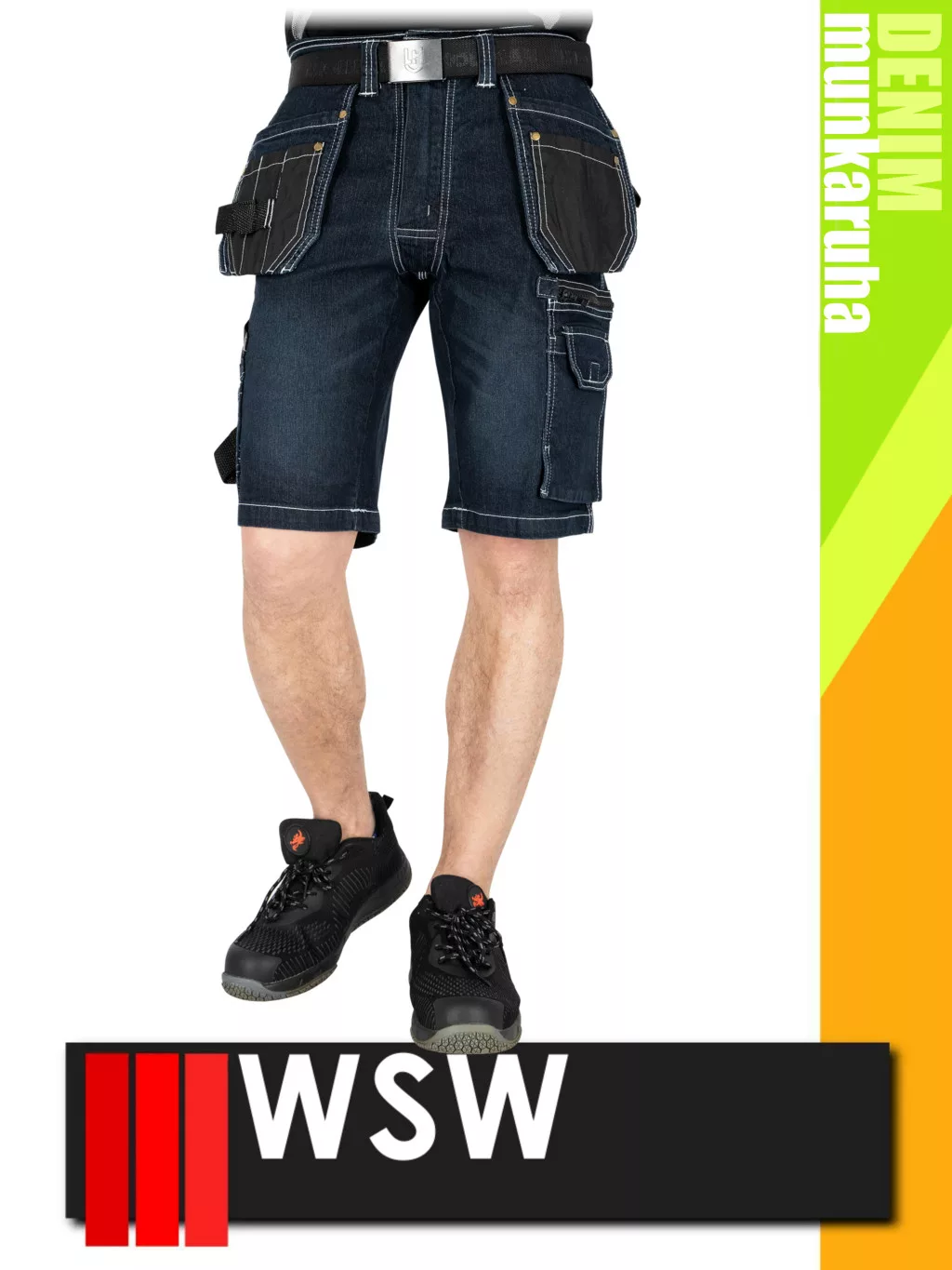 WSW MED DENIM NAVY technikai kevertszálas rövid farmer munkanadrág - munkaruha