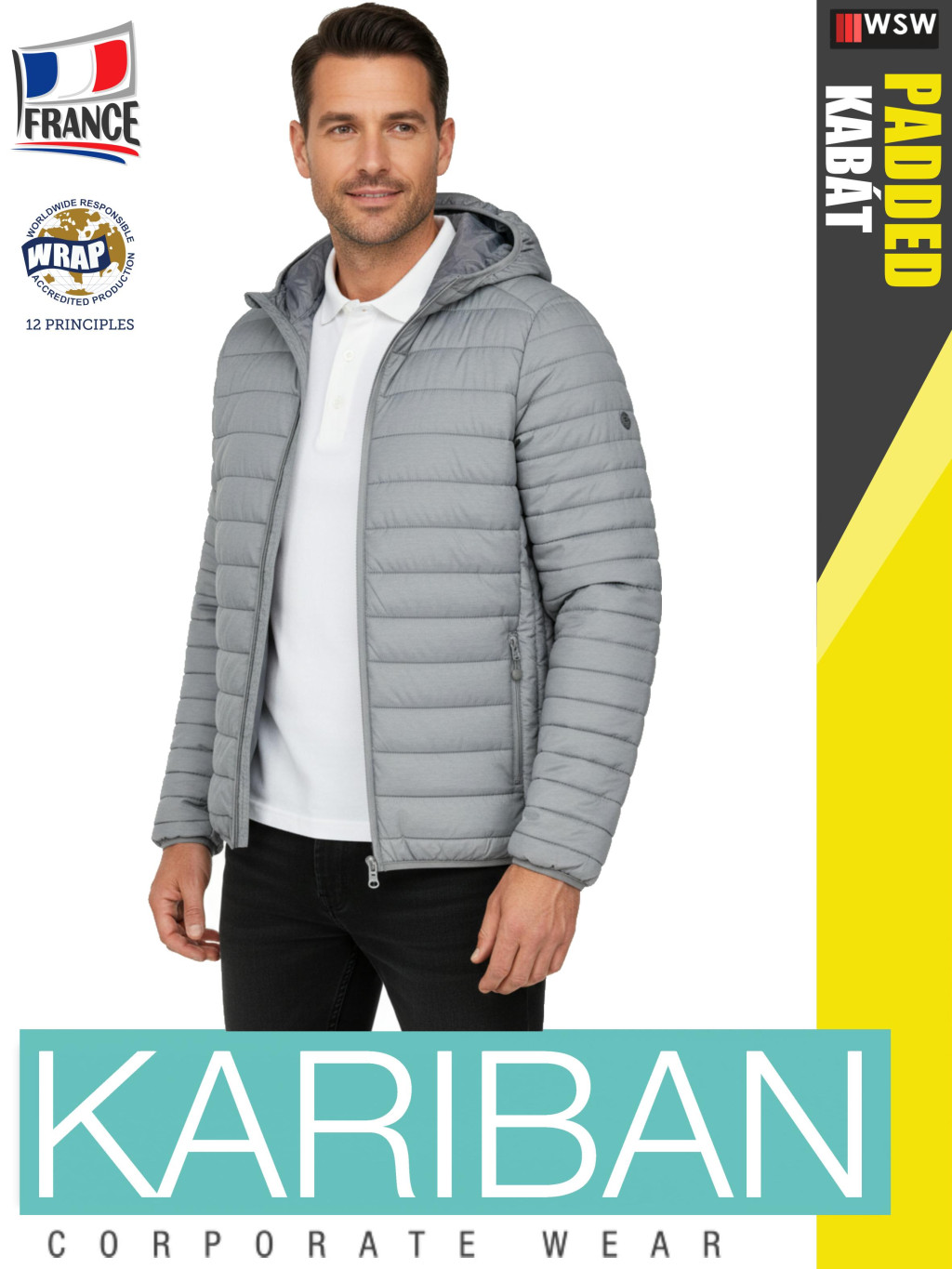 Kariban LIGHTWEIGHT PADDED MARLSILVER férfi bélelt kapucnis kabát - munkaruha