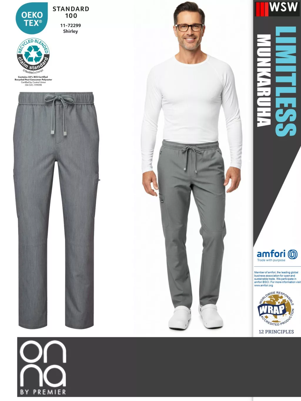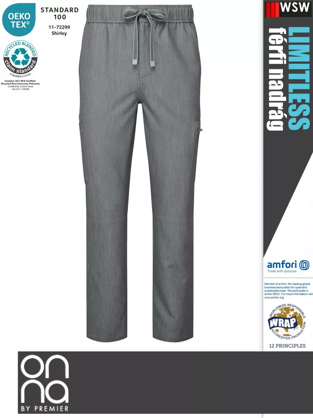 Onna Medical LIMITLESS GREY prémium stretch egészségügyi férfi nadrág - munkaruha