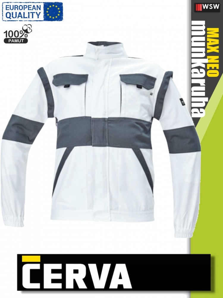 A munkaruha kopásálló technikai anyagból készűlt erősített varásokkal.
