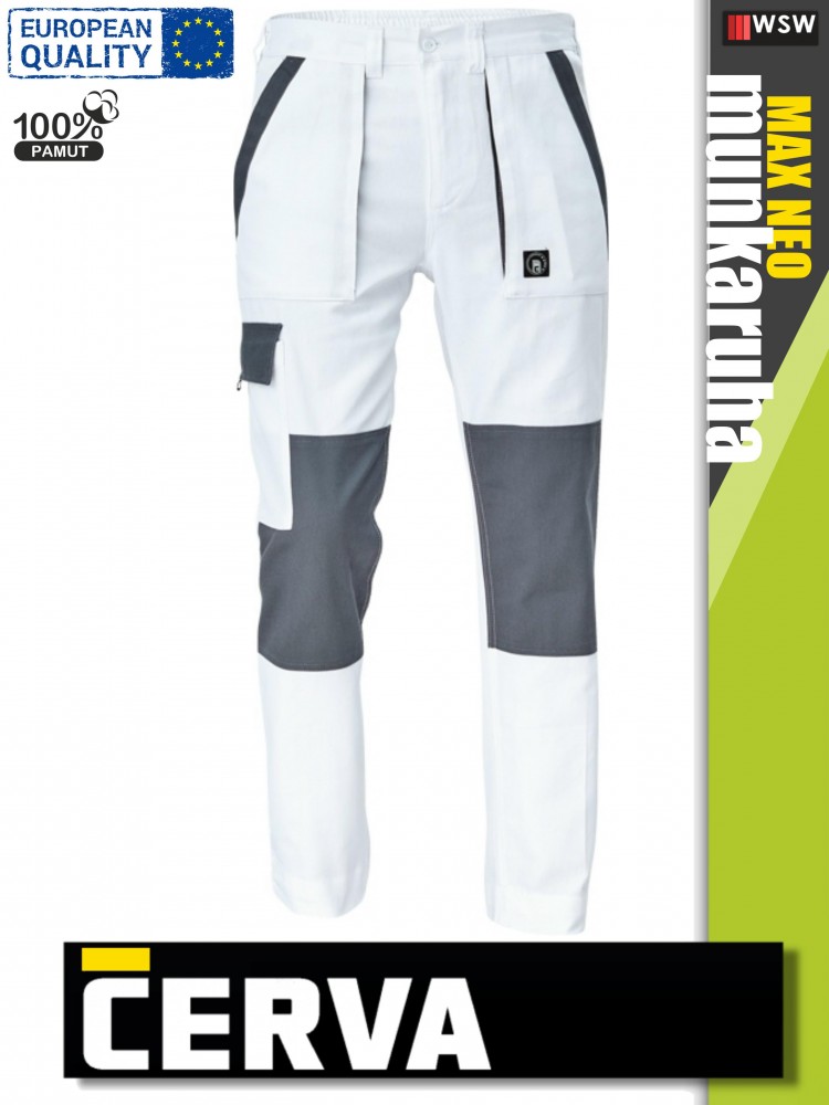 A munkaruha kopásálló technikai anyagból készűlt erősített varásokkal.