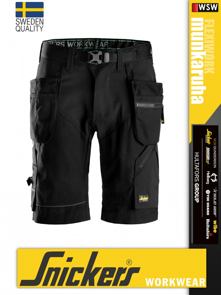 Snickers FLEXIWORK BLACK technikai stretch lengőzsebes rövidnadrág - munkaruha